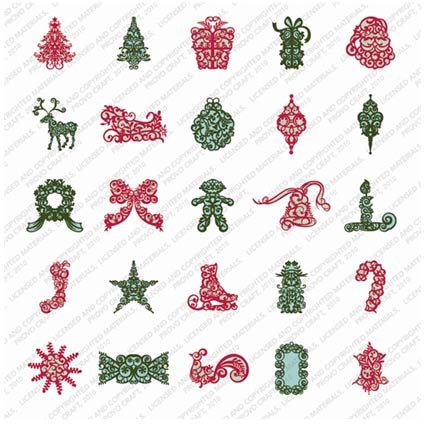 Celebrate the magic of Christmas tree decorations with the Trim the Tree cartridge. This cartridge offers a variety of ornament inspired cuts ranging from a candy cane to a wreath. You will absolutely love the sophisticated style and filigree look.